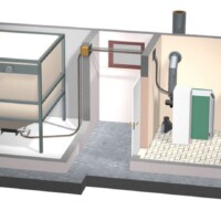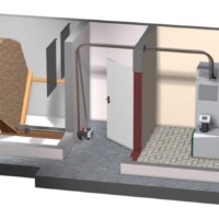 Για μεταφορές pellet μεταξύ χώρων με δύσκολη πρόσβαση ή για λόγους αισθητικής (λιγότερες παρεμβάσεις στον χώρο) χρησιμοποιούμε συστήματα υποπίεσης αέρα και ένα ή περισσότερα δοχεία ενδιάμεσης αποθήκευσης (suction).